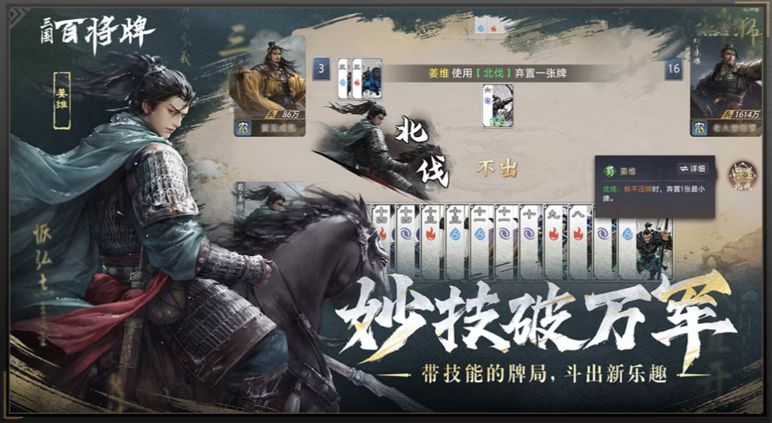 B站也拿出了比较有特色的产品,《三国:百将牌》将在10月30日开启测试。尽管是大量玩家熟知的“三国+卡牌”经典框架,该作却通过“技能+斗地主”的融合展现出了辨识度和差异化,也成为了首款把三国名将和斗地主玩法结合的游戏。玩家可通过武将技能改变牌面点数,或变更传统出牌规则,以打完手牌为胜利目标。丰富的武将设定与技能特点,也为对局带来更多变数与策略深度。