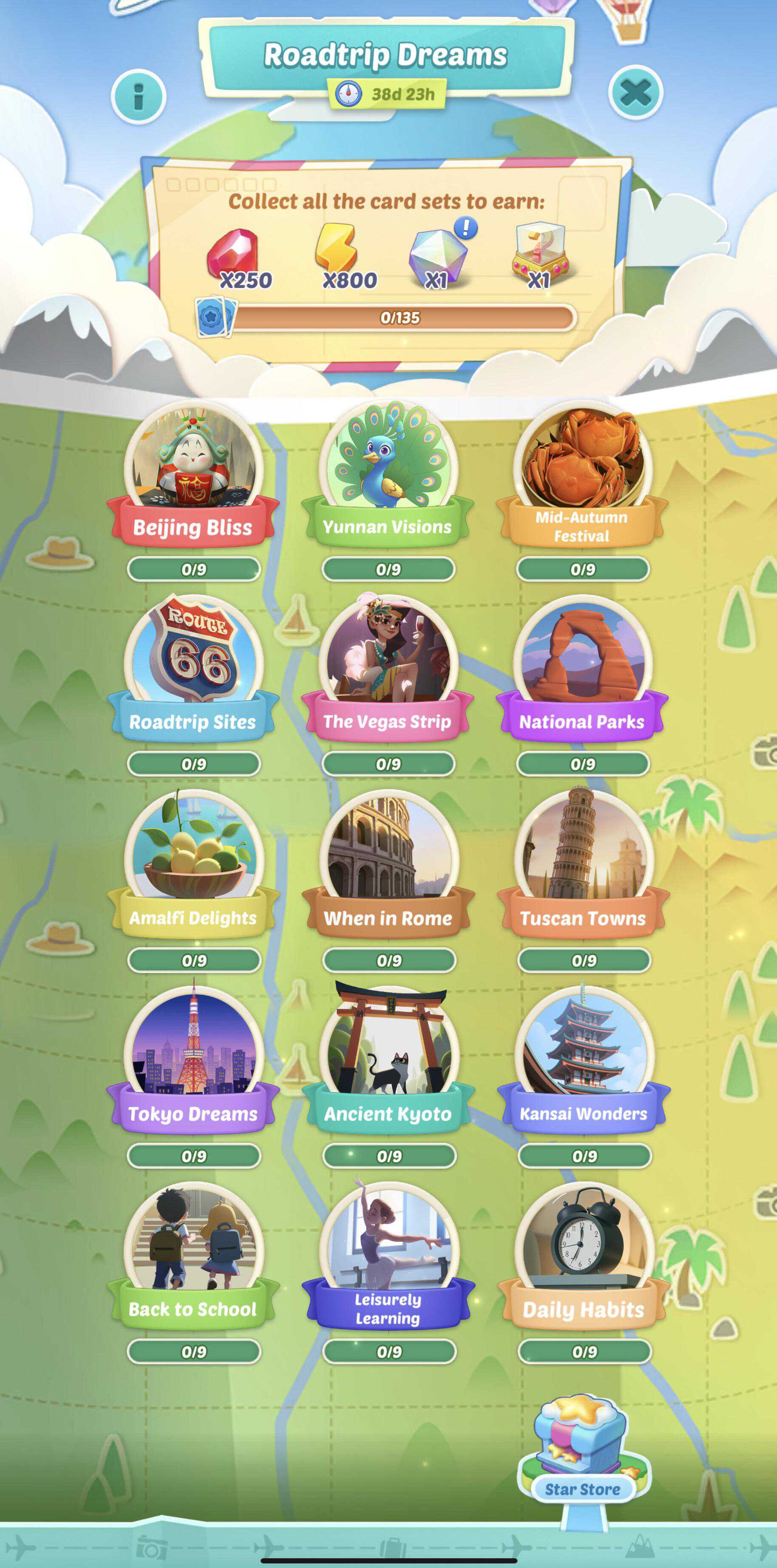 9月该游戏推出了主题活动“Roadtrip Dreams”,以“旅行回忆”为主题,融合卡牌收集与奖励兑换机制,成功提升了玩家参与度与付费意愿。随后的中秋节特别活动“Golden Moon Banquet”将节日氛围与装饰收集玩法相结合,进一步激发玩家的情感共鸣与消费动力。