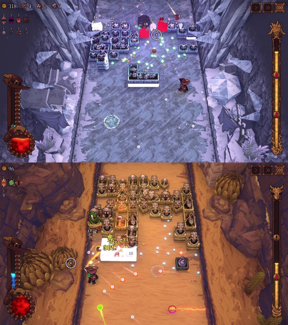 例如冰封雪原地图,光滑的冰面会令角色的移动变得难以精确控制,产生意外的滑行位移。与此同时,部分敌人会拥有对特定角度的攻击免疫的特性。玩家当然也可以化劣势为优势,利用这些“天然屏障”让弹珠实现更频繁的反弹,创造出意想不到的攻击轨迹。