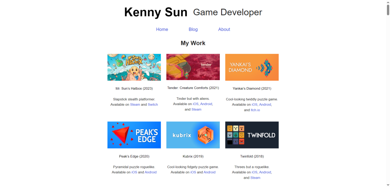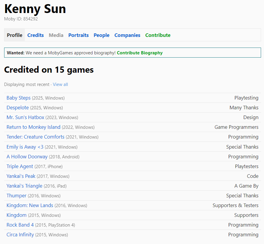 事实也正是如此,Kenny Sun是一位居住在纽约布鲁克林的资深独立游戏创作者。他的游戏开发生涯始于2007年高中时期,并在Newgrounds等平台发布过Flash游戏。