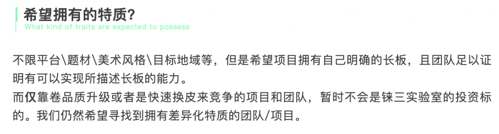 这也意味着,早前那一套「不确定性太高,退出太难」的游戏行业投资模式大概已经不适用于当前的市场环境。而铼三现在的模式无疑给创业者和资本双方都提供了一个新的思路。对创业者来说,这个模式无疑会有一个相对更“自由”的开发环境,而且还能提供包括但不限于行业经验、应用技术、法务发行等更现实的支持;