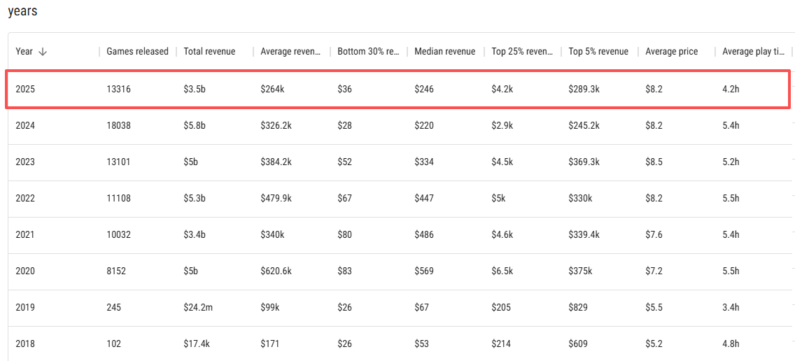 根据SteamDB的统计,2025年尚未结束,平台上架游戏数量已达15483款,虽未超过去年峰值,却已稳坐历史第二把交椅。