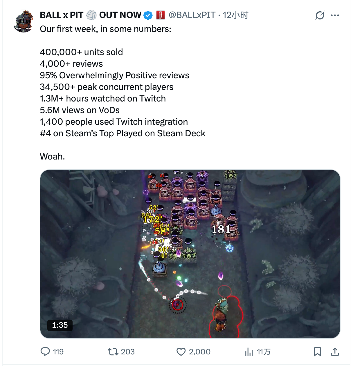 同时,玩家游戏时间的碎片化,也让他们更青睐能快速带来愉悦感的短平快游戏,而非需要长期投入的硬核作品,这在一定程度上解释了为何近期一些像《Ball X Pit》、《Megabonk》等短对局的肉鸽游戏能够实现不少的销量。