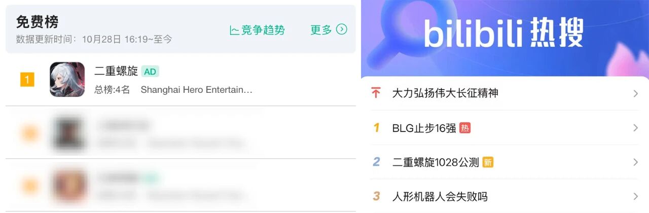 市场反响初步印证了产品的不俗影响力。预下载阶段,《二重螺旋》便已登顶iOS免费榜;截至发稿前,游戏在B站发布的公测PV播放量突破222万,相关话题也占据多个社交平台热搜榜单。