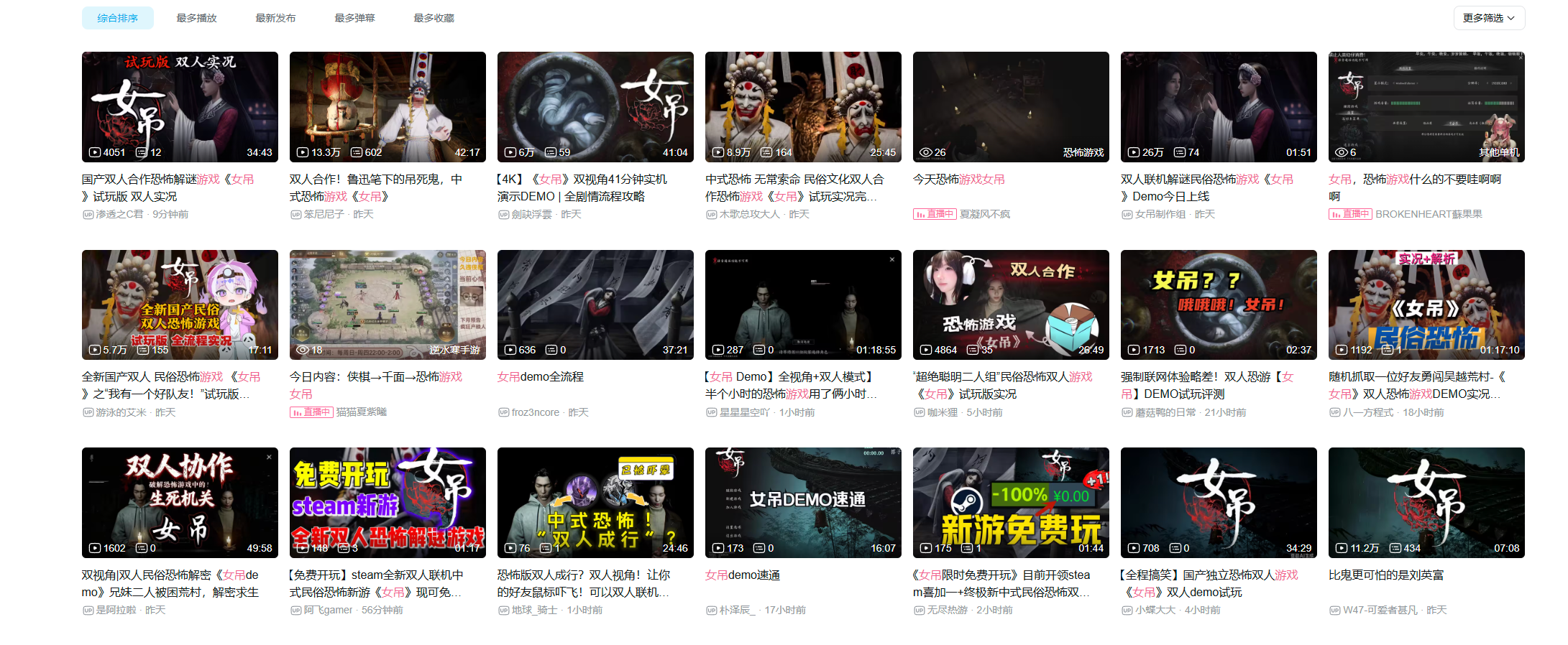 10月27日,一款名为《女吊》的国产恐怖题材解谜游戏上线了Demo版本,刚好了搭上了Steam“游戏尖叫节”活动,于是便迅速开始在国内社交媒体上走红,其试玩实况收获了大量的关注。