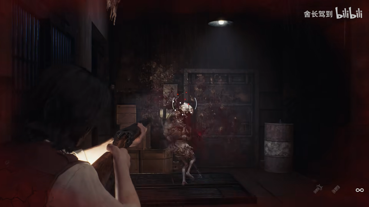 Demo后半部分主要围绕着战斗方式展开,《七夜:救赎》在攻击反馈上做了一点小巧思,即在准心显示出子弹的命中位置,并且在击中弱点时还会显示为更显眼的红色,这样一来玩家更能知道自己在每次射击的收益,从而对伤害做出个更肯定、正确的判断。