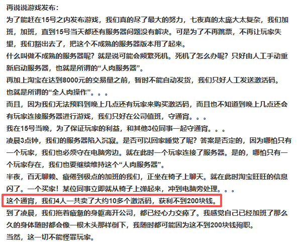 在《七夜》正式发售前,丁果科技曾积极寻求与专业的发行公司合作,以期更好地推进游戏的市场推广与销售工作。然而,实际的合作过程却颇为坎坷,据汤锴在博客中透露,他们接触的数家发行公司中,有的出现了“背刺”行为,有的则近乎“不作为”,使得合作的期望落空。最终,发行与激活码发放的重任,不得不由丁果科技的团队成员自己承担起来。