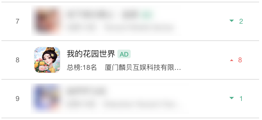 此外,TOP20中还出现了一个全新的面孔,它就是由厦门麟贝互娱科技推出的模拟经营手游《我的花园世界》。