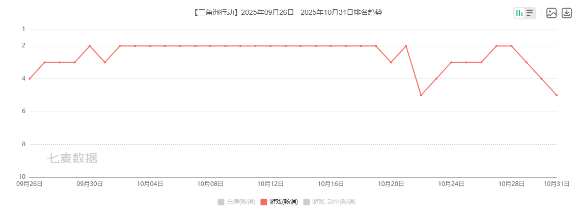 一洲年活动期间,《三角洲行动》的营收表现可以说是相当稳定,基本稳居在畅销榜TOP5。