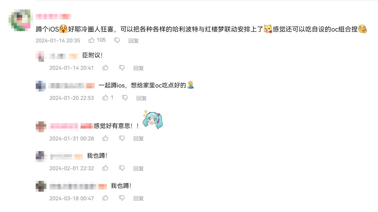 后来在花了一些时间去研究同人圈子的生态后,我觉得能有这样一支团队,然后也很懂如何去服务这些用户就挺好的。后续玩家的反馈也证明了这一点,我曾经也去看过玩家在B站官号下的一些留言,很多人留言说终于有人做了一个懂他们的产品了,像这样的留言无论对我还是对团队来说都很重要的。