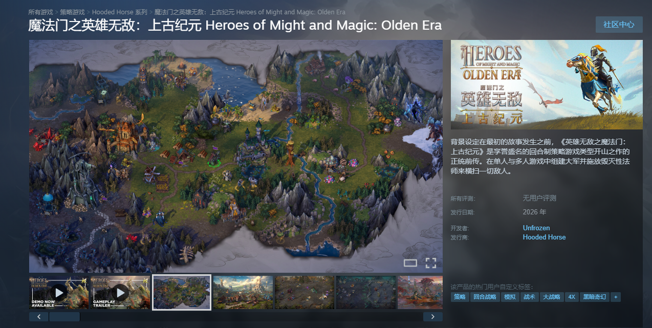 第三个我想推荐的是最近看到的一个demo,它其实是很老的一个游戏,就是那个《魔法门之英雄无敌》的最新的一个demo,它是一个非常非常老的游戏,我甚至以前做了那个《英雄无敌2》的汉化,它其实是一个很早以前有很多人喜欢的玩法,其实我觉得这个玩法本身它的这个循环是一个非常自洽、非常顺滑的一个循环。