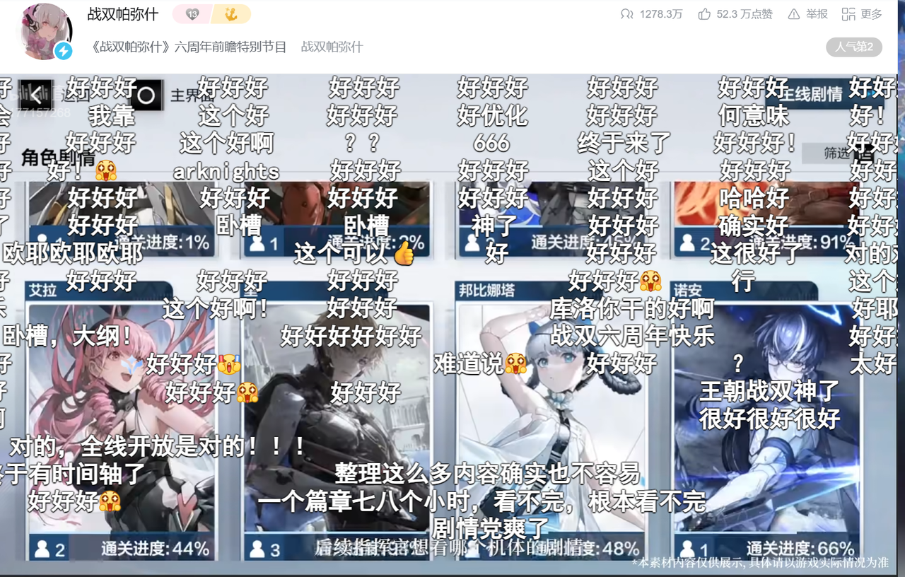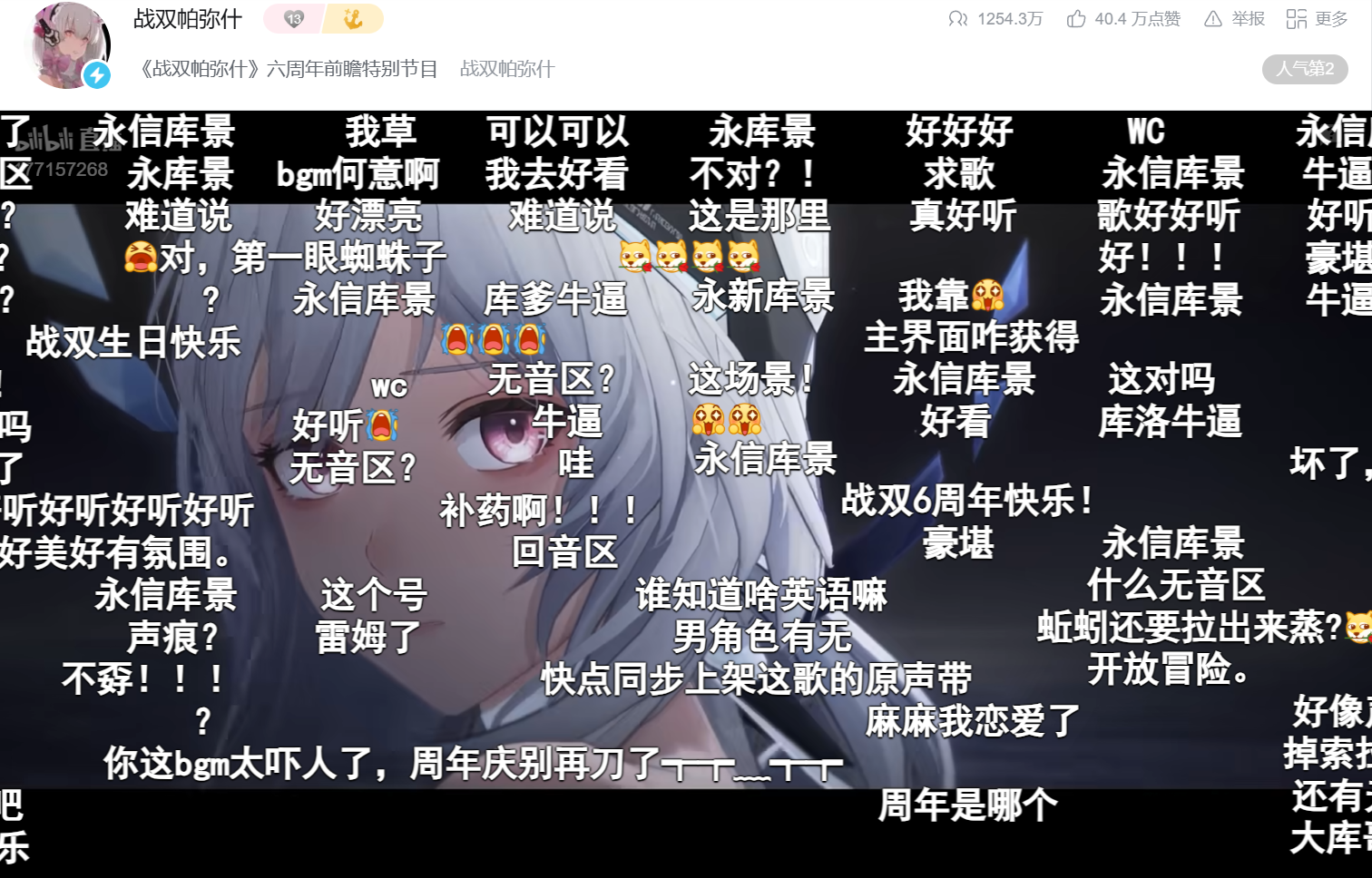 (战双六周年前瞻节目当天,官方直播间的弹幕一片叫好)