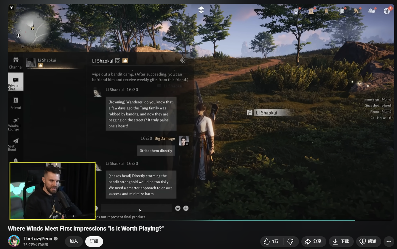 (海外博主对游戏内的NPC AI对话很感兴趣)