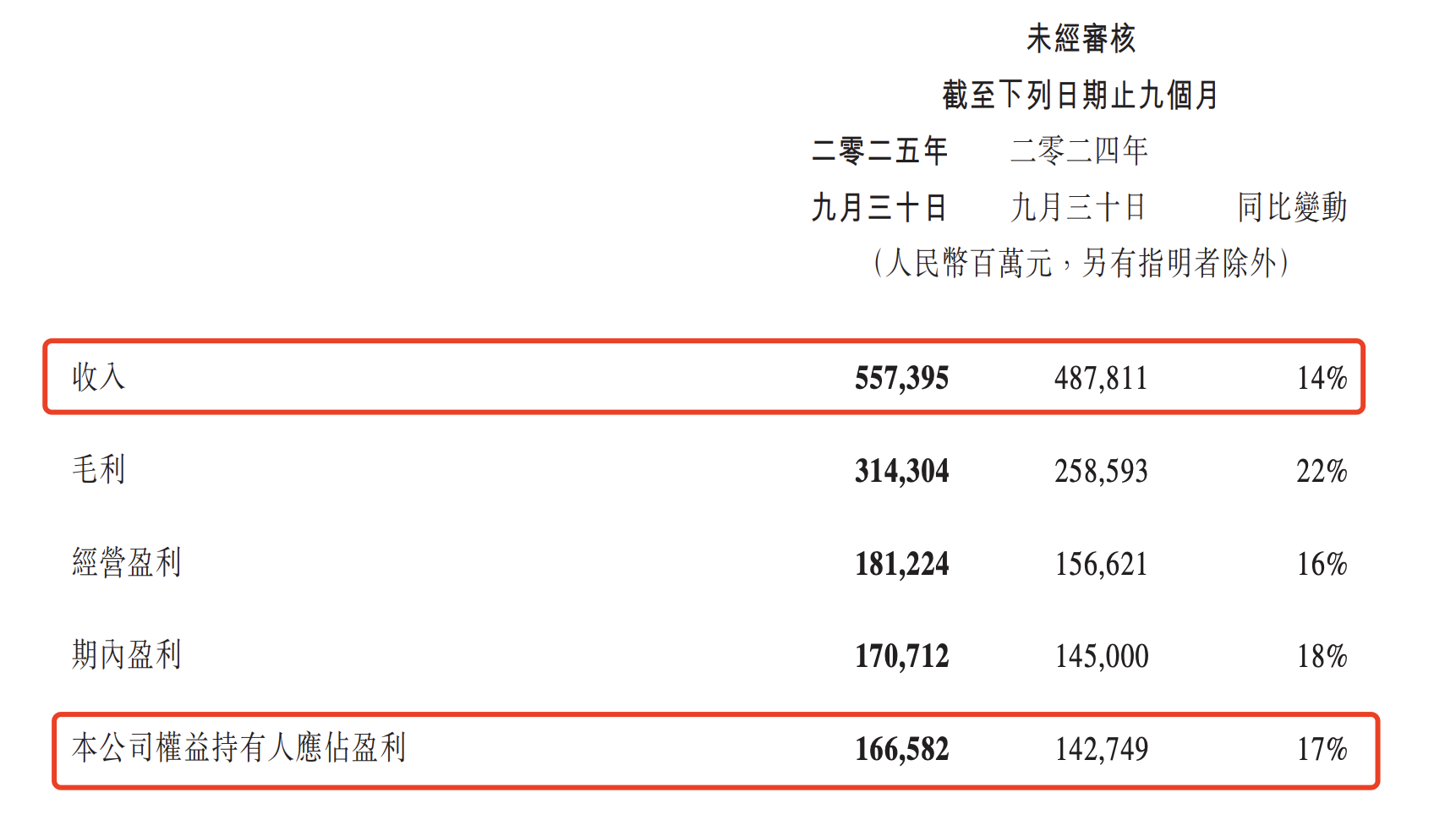 截至今年9月30日,腾讯今年的累计营收已经来到5573.95亿元,同步增长14%,公司权益持有人应占盈利1665.82亿元,同比增长17%,按照目前的势头,今年腾讯似乎正在冲击后者的年盈利2000亿大关。