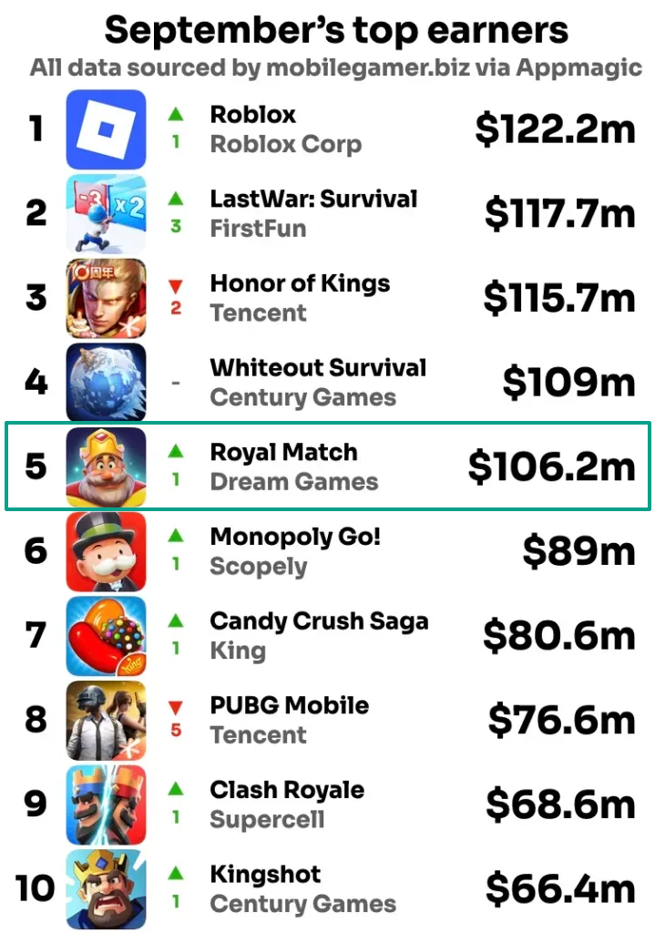 第三方数据显示,《皇室战争》在7月创下了自2021年以来的日流水新高。9月流水或超7.5亿元,同比大增360%。而在今年年初,其月营收还常年在8000万至1亿元区间徘徊。在玩法创新、匹配机制优化、热门IP联动及头部KOL生态发展等多重举措下,《皇室战争》无疑在今年第三季度期间登上了自己的新巅峰。