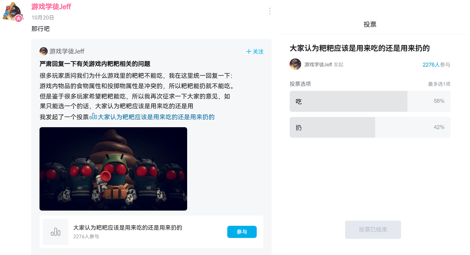 (甚至玩家还催制作人将“粑粑”改扔为吃)