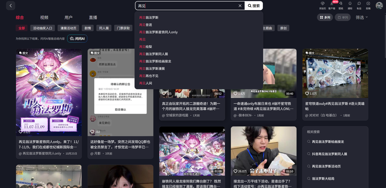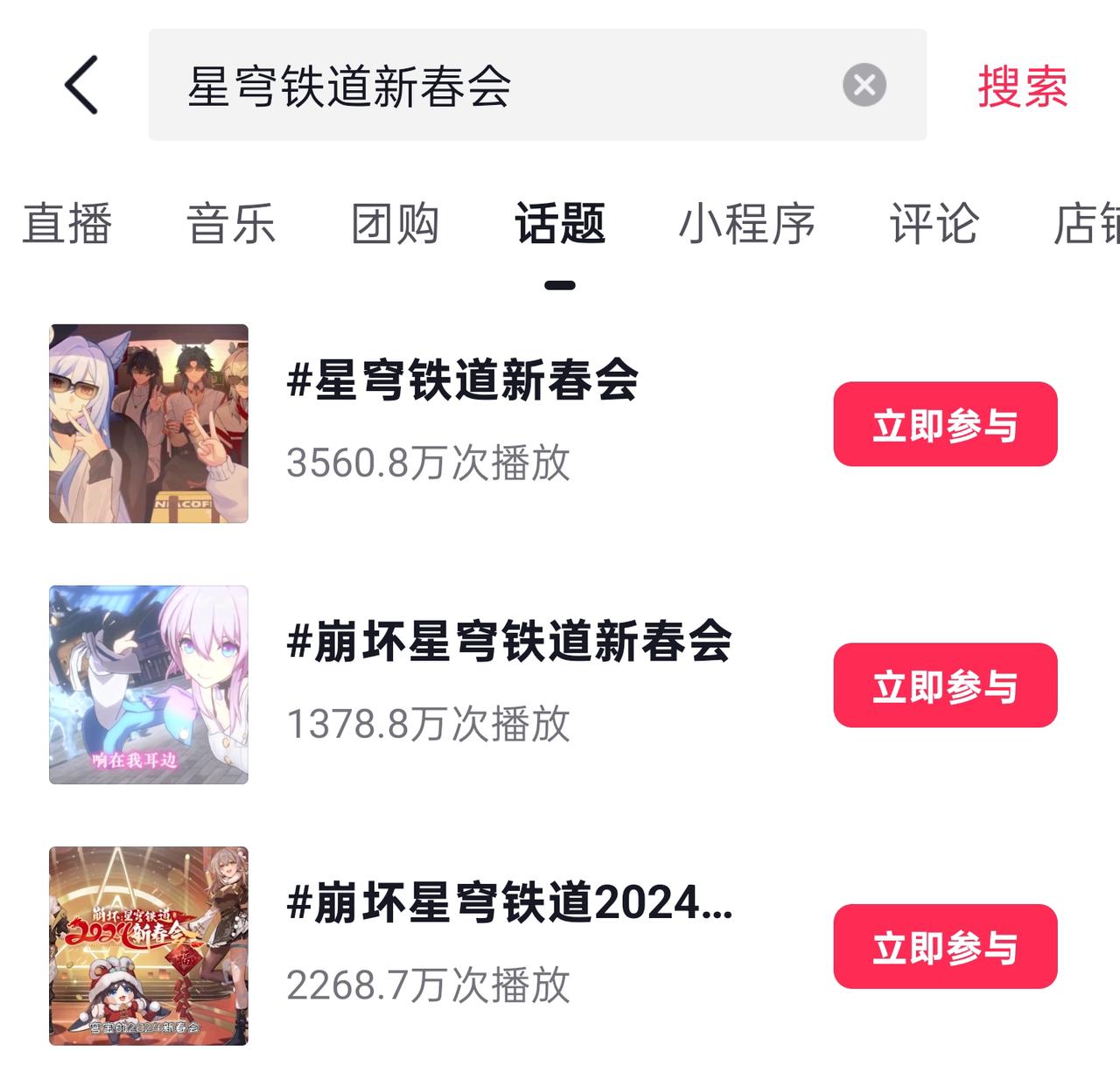 (抖音搜“再见”,几乎所有的搜索结果都是崩铁相关的)