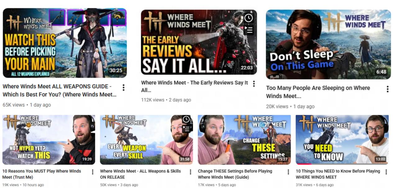 《燕云》发行相关人士告诉我,在过去一年里,有很多外国创作者原本并不了解武侠,更不了解《燕云》。但团队坚持通过邮件与各国KOL保持着良好的沟通,及时分享开发进展。发行团队与海外社区建立的长期信任关系,在发布期集中迎来了回报,众多此前建立过联系的创作者主动发布免费稿件,新手安利、深度评测、配装攻略样样都有,形成了全方位的内容传播矩阵。