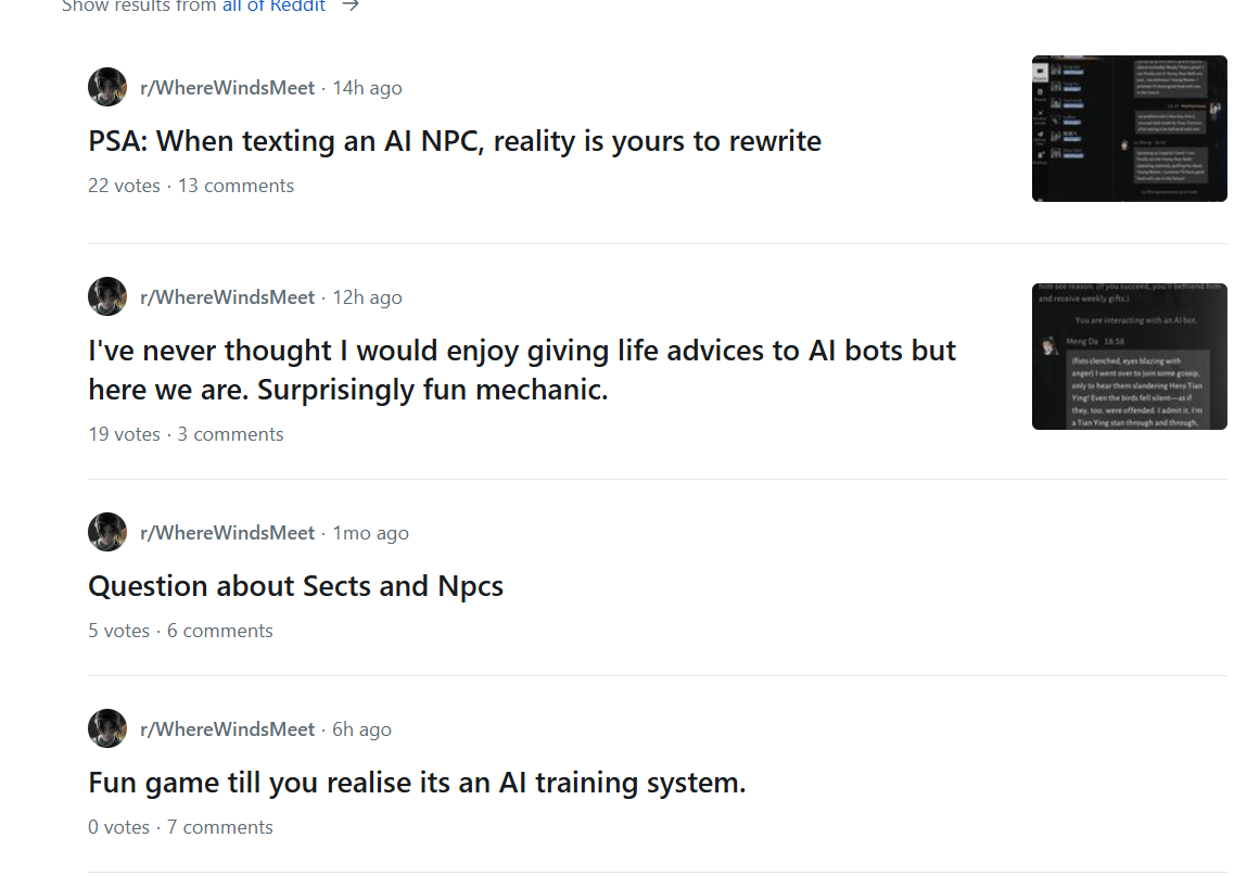 而通过强调“高品质体验+无P2W”这一组合卖点,《燕云》也成功打破了海外普通玩家对国产GaaS游戏的刻板印象。在Reddit等社区,“这居然真的是免费游戏?”之类的讨论比比皆是。玩家口中的“东方版大镖客”体验,逐渐成为了产品上线初期最有力的口碑传播标签。