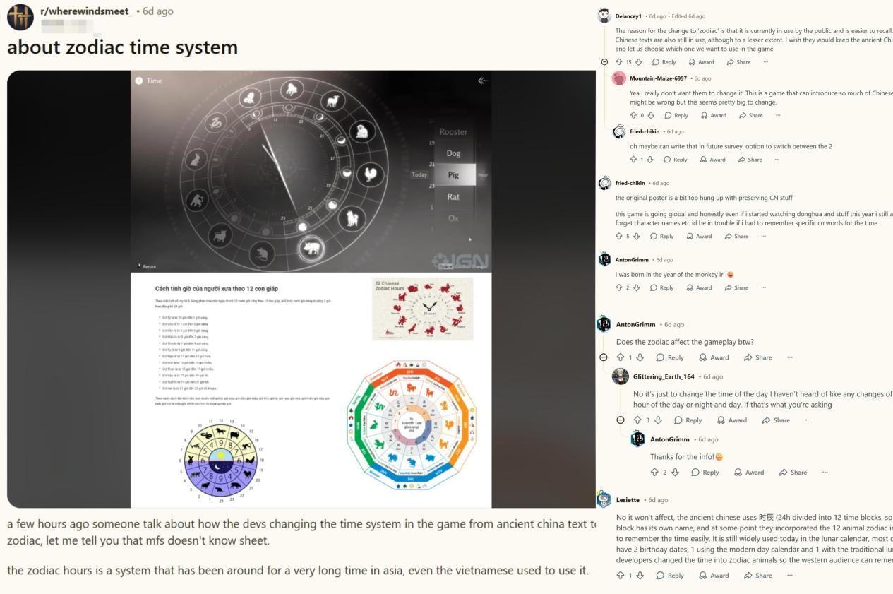 例如在Reddit,有海外玩家发现游戏中使用生肖符号作为计时方式,便自发研究其背后的“时辰”概念并与社区分享;