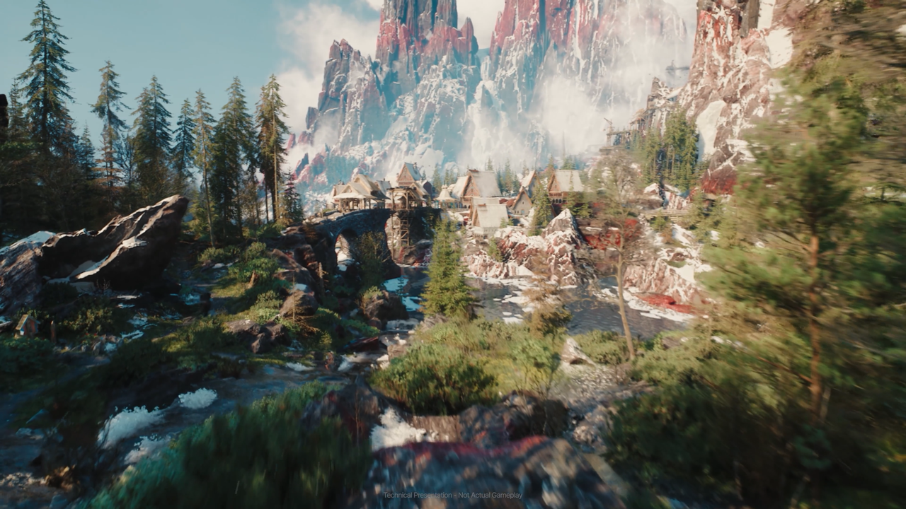 其实这在现有的一些游戏演示当中,就已经有不少团队使用了UE5引擎最新技术,并发挥出了出色的效果。就好比在今年6月时发布的《巫师4》技术演示上,就能够很明显的感觉到《巫师4》的场景复杂程度,整体分布的自然程度都相当惊艳。