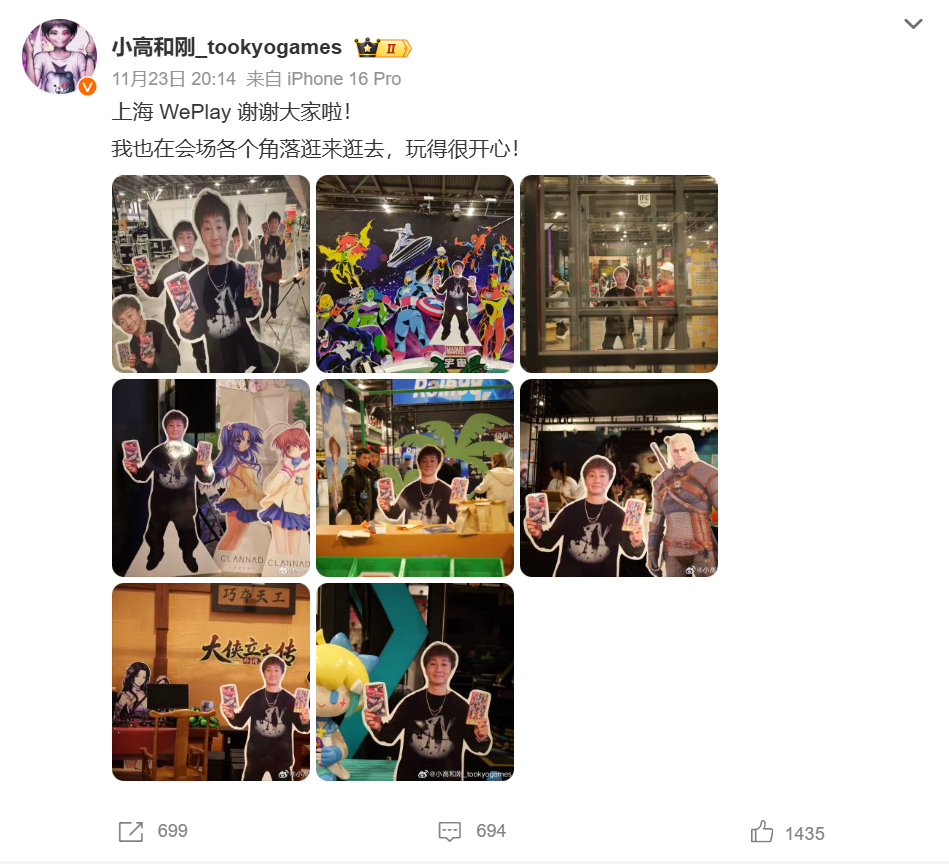 (WePlay上甚至登上微博热门的小高和刚的“等身立牌”)