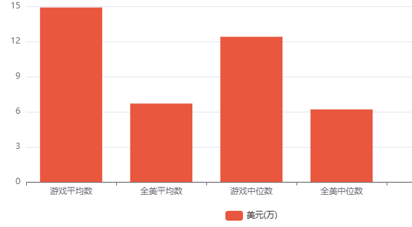 (美国游戏从业者的工资分布图)