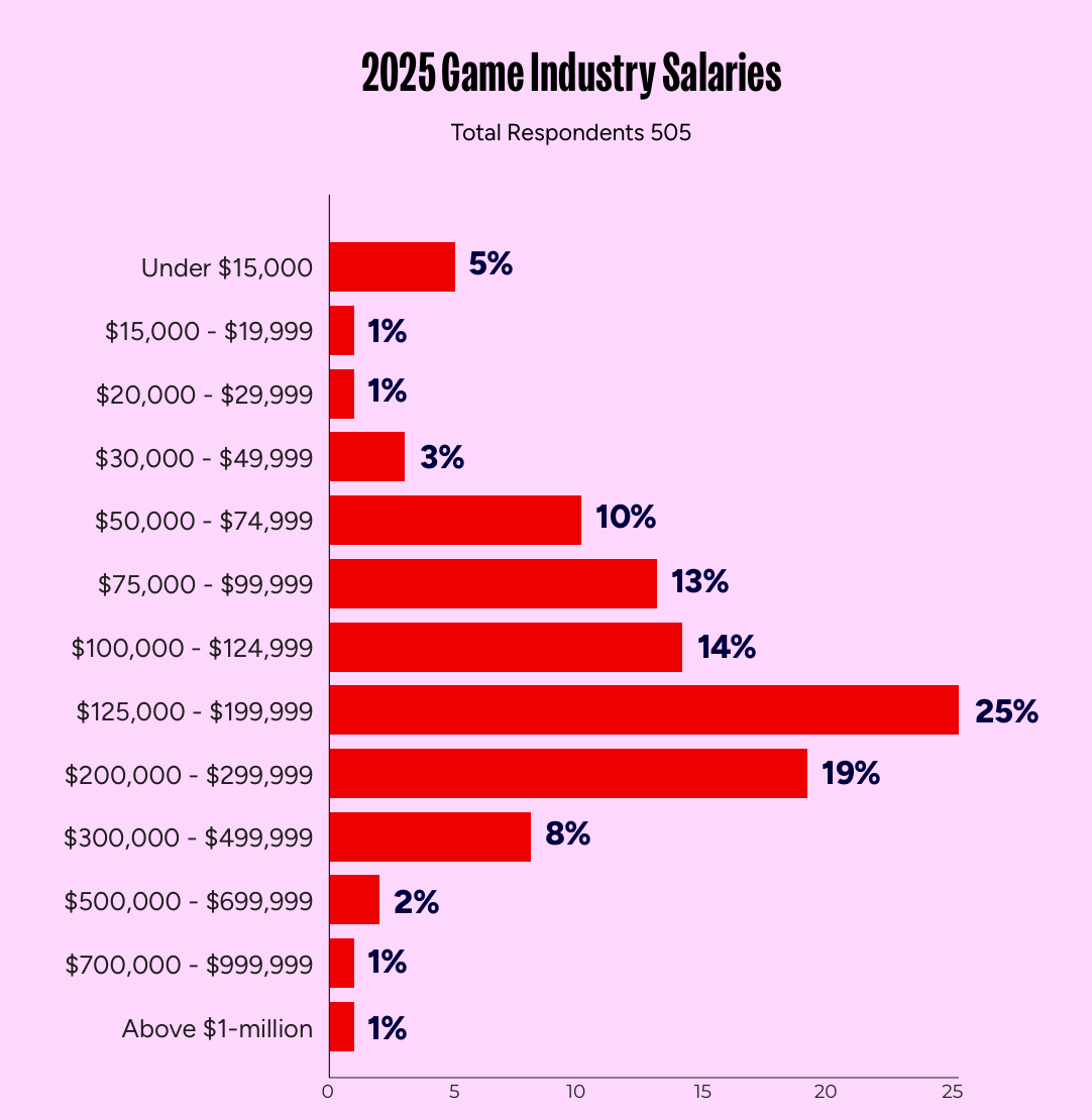 近日,GDC发布了关于2025美国游戏业薪资的最新报告(2025 Game Industry Salary Report),该报告于2025年7月完成调查,共覆盖562位美国游戏从业者。