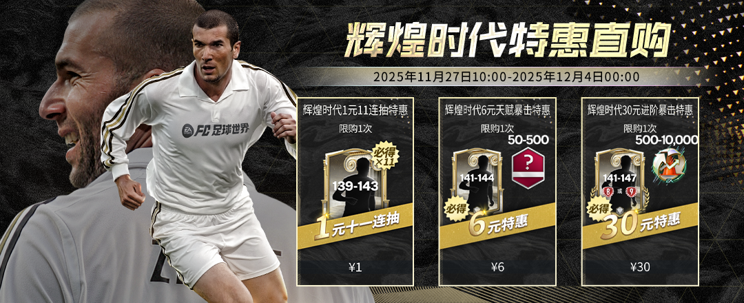 为了致敬齐达内传奇生涯,《FC ONLINE》准备了多重福利好礼。11月29日至12月7日期间,将有胜利币兑换商城全场五折,累计登录送幸运金币卡,以及每日比赛领齐达内球员包和金币卡等活动送给所有玩家。