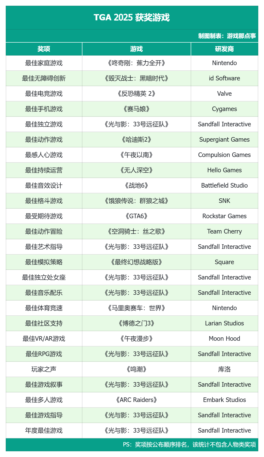 学会这几条规律,那么恭喜你,你已经成为一名合格的TGA评审了。至于建立在种种规则下的TGA到底是不是“野鸡奖”?这似乎又是另一笔难以算清的糊涂账,毕竟如果玩家喜欢的游戏入选了,那么TGA就可以变得很权威,但如果玩家喜欢的游戏没入选,那么它就是野鸡奖无疑。