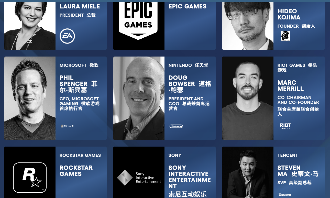 首先作为一个需要兼顾商业与权威性的奖项,TGA背后有一套豪华的顾问团队——他们大多数都是全球游戏行业里的巨头,有索尼、任天堂、微软这样的经典主机御三家,也有EA、R星、腾讯、育碧、V社在内的一众游戏大厂。
