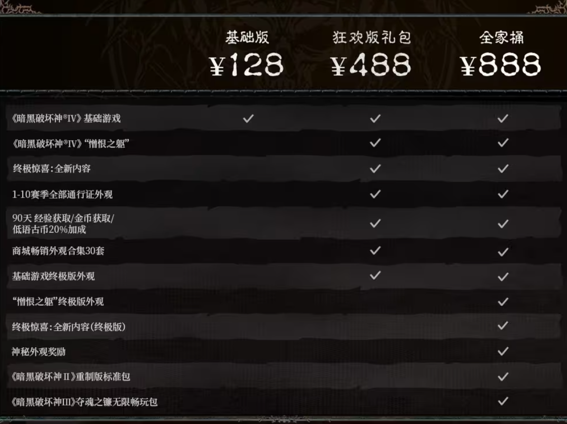 除此之外,国服的下一档次488版本礼包,对于核心暗黑玩家来说,同样是个极具性价比的选择。