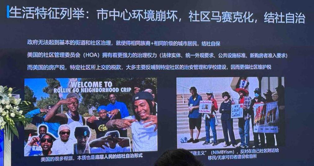 那为什么会导致这种现象呢?首先是美国政府跟我国政府不一样,他们很多时候无法起到基本街道和社区治理的作用,所以就导致不同的族裔和相似阶级的城市居民会结社自保。