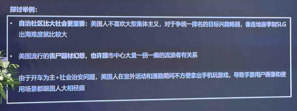 比如说像中美两国的手游画像鸿沟,因为我们之前有一个初步的判断,觉得可能美国的手游用户更像我们的小游戏用户,这可能就是中美手游玩家的巨大差异。