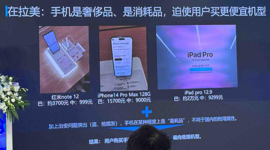 他们会更倾向于保护本国产业,设置极其高昂的电子产品进口关税。再加上它的治安环境可能要比美国更复杂,就产生了一个现象,就是他们很多手机的价格是国内的两到三倍。比如像红米这种性价比高的产品,一般定价是1000块钱以内,但是在拉美那边卖3700,这个价格在国内可以买一个更高端的手机了。