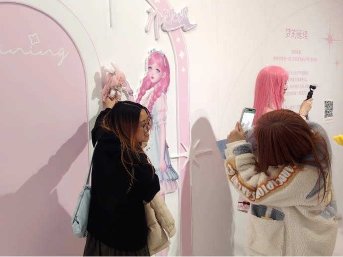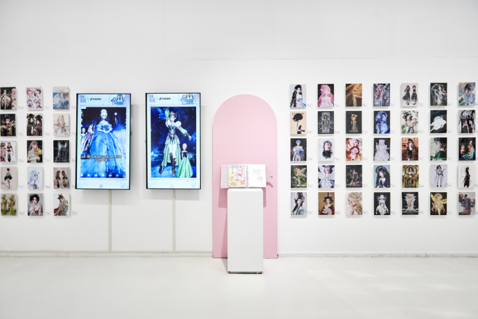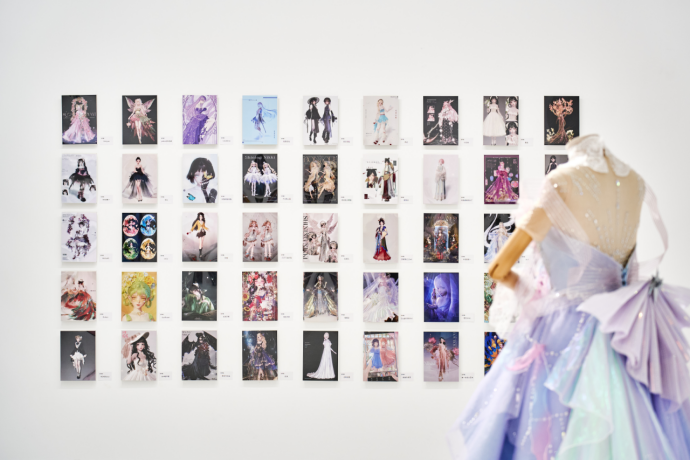 你还可以看到,展览里许多来自玩家的痕迹:社区里流传的搭配灵感、被百万点赞的套装、手作的祝福都定格在这里。