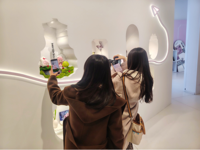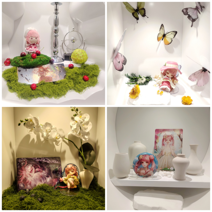 比如想着玩家一定会带着周边来打卡,展区贴心地布置好几处专门用于展示周边、做“谷美”的精致小景。