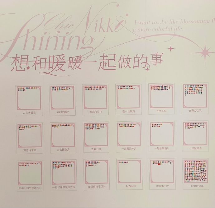 方寸之间,暖暖的穿搭风格变了又变,整面墙就好像宇宙中相似而不同的点点星光。
