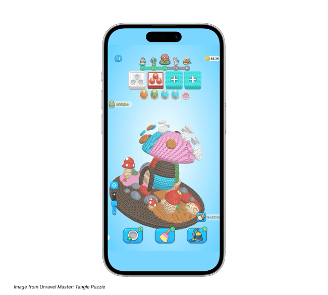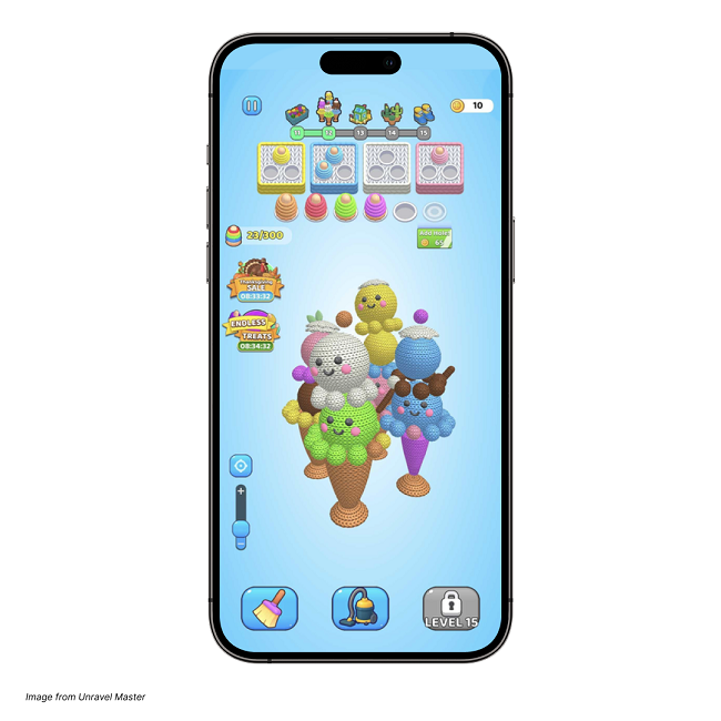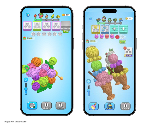 《Unravel Master》对《Screw Guru》的玩法重新设计,使其更具治愈性和沉浸感。毛线解开的过程为玩家带来视觉上的满足感,从而吸引了全新的受众。游戏还增加了精美的动画、治愈性解谜机制、引人入胜的叙事手法、沉浸式触觉反馈以及高水准的视觉呈现,帮助其在竞争激烈的市场中脱颖而出。