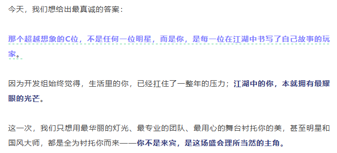 正如策划团队在今年春节所坦言:“《逆水寒》后续的路径只有一条:那就是站在玩家的角度,去给大家提供更好、更高品质的游戏内容、更创新更好玩的游戏体验、更好的游戏福利,团队将为此目标去不断学习和精进提升、努力奋斗。”