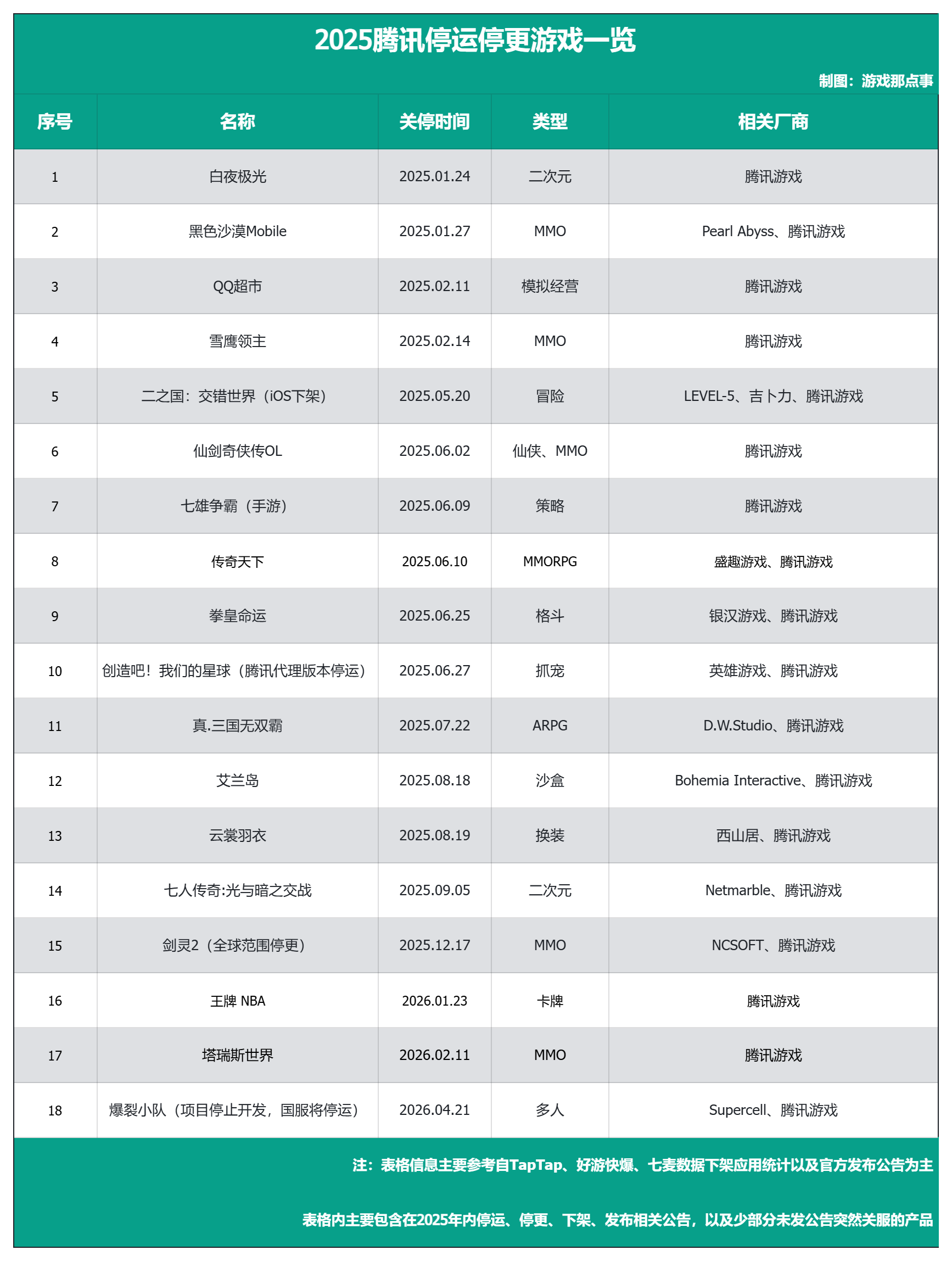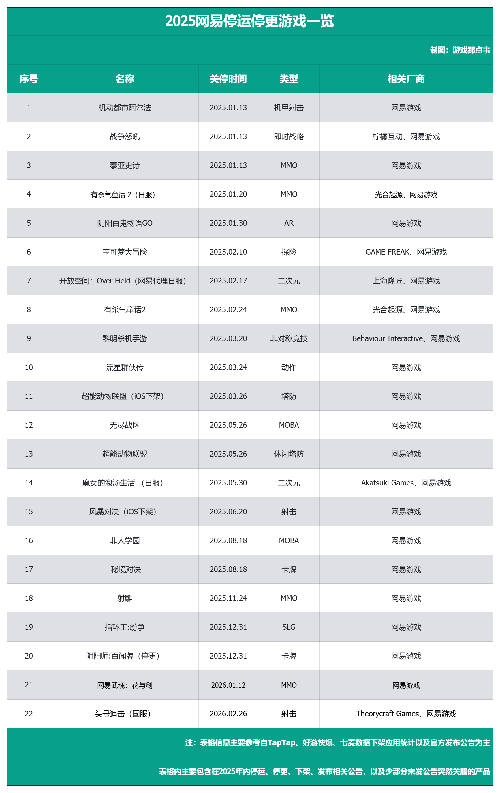 以下为2025年停运停更游戏不完全统计名单,仅供参考: