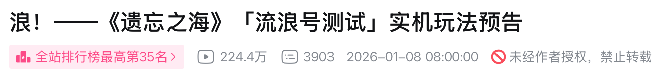 今天,《遗忘之海》最新的实机PV与“流浪号”测试招募同步解禁。截至发稿前,B站播放量已突破220万。