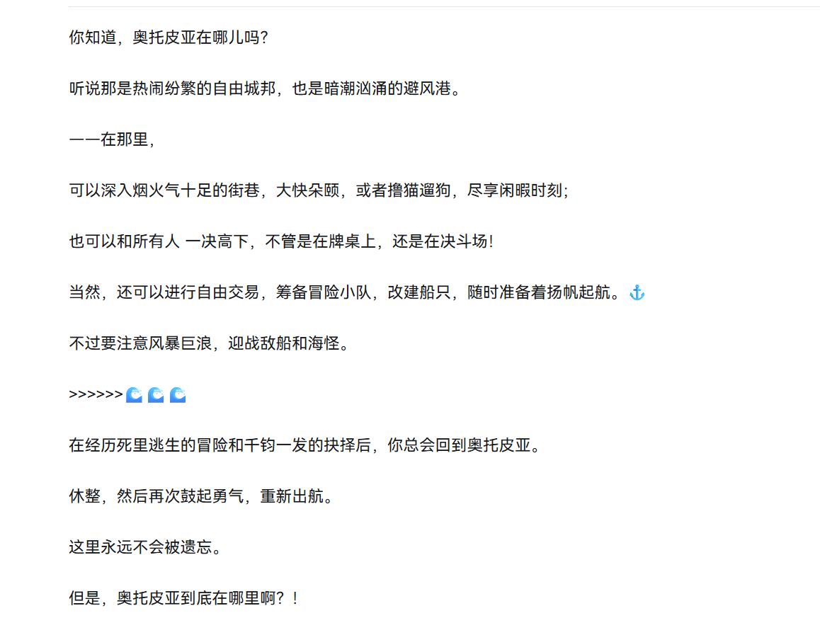 如果你仔细听歌词就会发现,曲子在渲染欢快情绪的同时,也承载着一定的叙事功能,那就是向玩家传递“奥托皮亚”这个地区的概念。