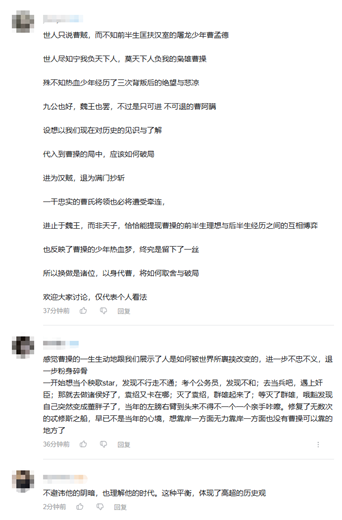 就拿本周三(1月7日)上线的《问曹》片子为例,它在基于真实历史文献考究的前提下,做了很多大胆且新颖的猜想。然后,还通过不同的视角去剖析“曹操”这一著名历史人物的形象,一方面摆脱了文艺作品的“脸谱化”,另一方面也让外界得以了解到曹操的人生经历,从而引发更深层次的价值与情感共鸣。