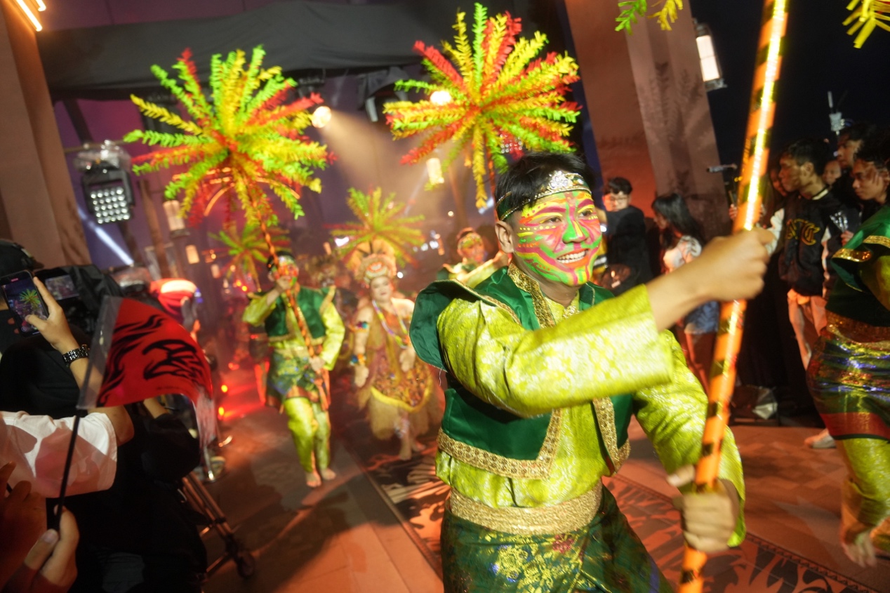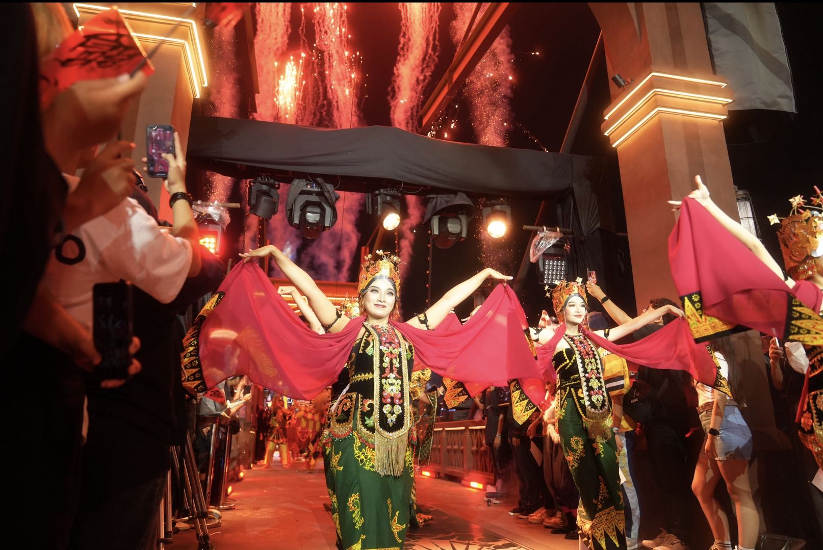 开幕式选址于雅加达兼具文化底蕴与现代设计感的PIK水上综合体,由斯瓦尔加洛卡舞蹈团拉开序幕。60名身着传统服饰的舞者代表印尼各地族群,通过东爪哇甘德龙、巴厘岛勒贡等特色舞蹈,融合迦迪塔、雷奥格等印尼神话元素,展现多元文化交融的独特魅力,而这一“电竞+文化+城市”的融合模式,正是中国电竞出海过程中秉持的本土化发展理念的生动实践。值得一提的是,游戏内诸多源自不同文化的英雄设计,既包括印尼民间传说中的勇士迦多(Gatotkaca),也涵盖嫦娥、孙悟空等中国传统文化符号,让电竞成为跨文化交流的通用语言。