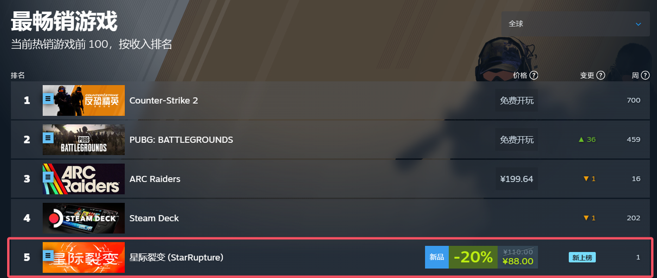在2026年年初的Steam平台上,《星际裂变》(StarRupture)作为一款新作,成功跻身全球热销榜前列,成为一匹表现亮眼的黑马。