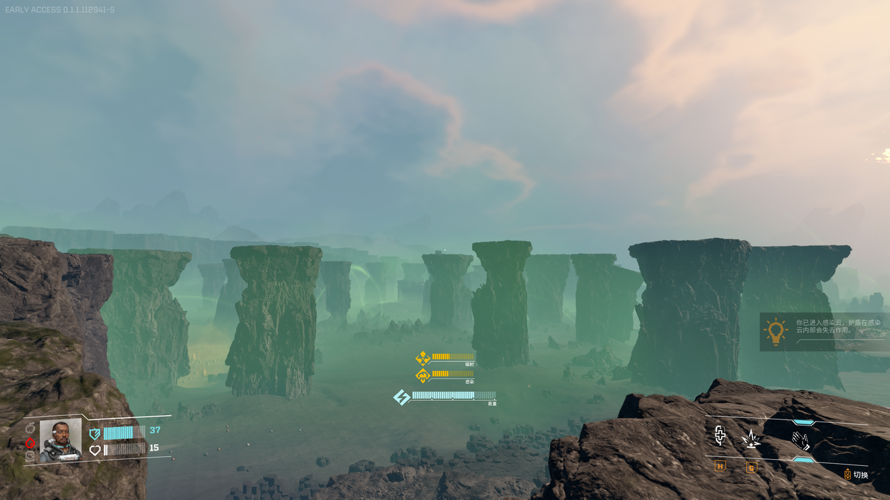 这把工具不仅能采集散落在地表的矿物和珍贵的陨石核心,还能在遭遇敌对生物时进行自卫性攻击。与此同时,个人护盾也为玩家提供了基础的生存保障,能够抵挡一定程度的外界伤害。