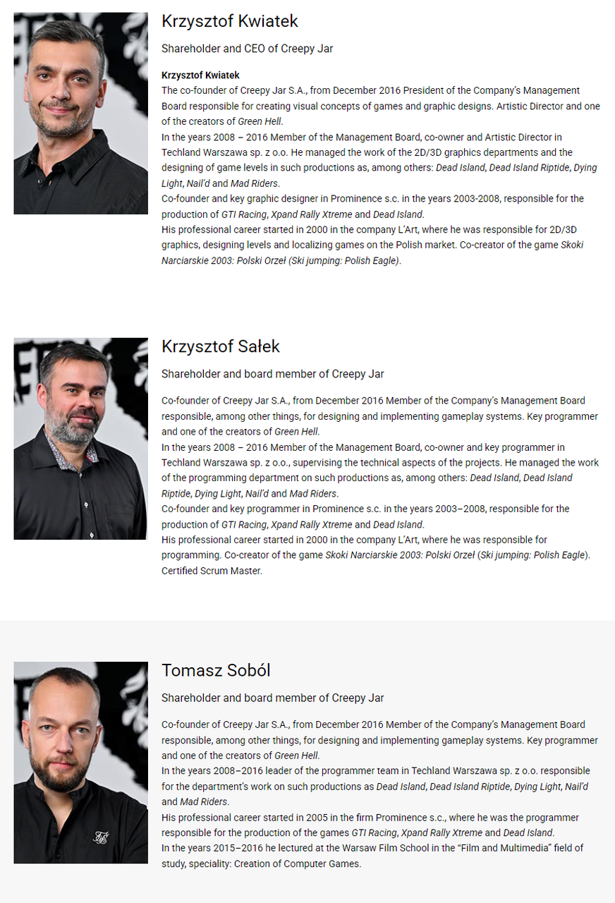 其核心团队由来自Techland(代表作《消逝的光芒》)、Flying Wild Hog(代表作《影子武士》)以及11 bit studios等知名波兰游戏公司的资深成员构成。
