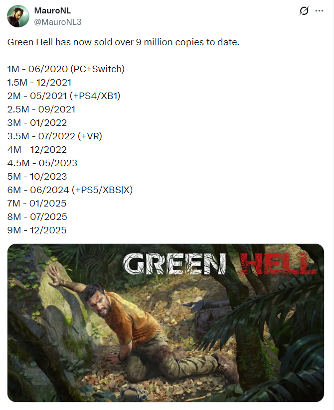凭借持续的高质量更新和多平台扩张(陆续登陆PlayStation、Xbox、Switch及VR平台),《绿色地狱》销量持续攀升,据社区资料显示上个月已突破900万套。
