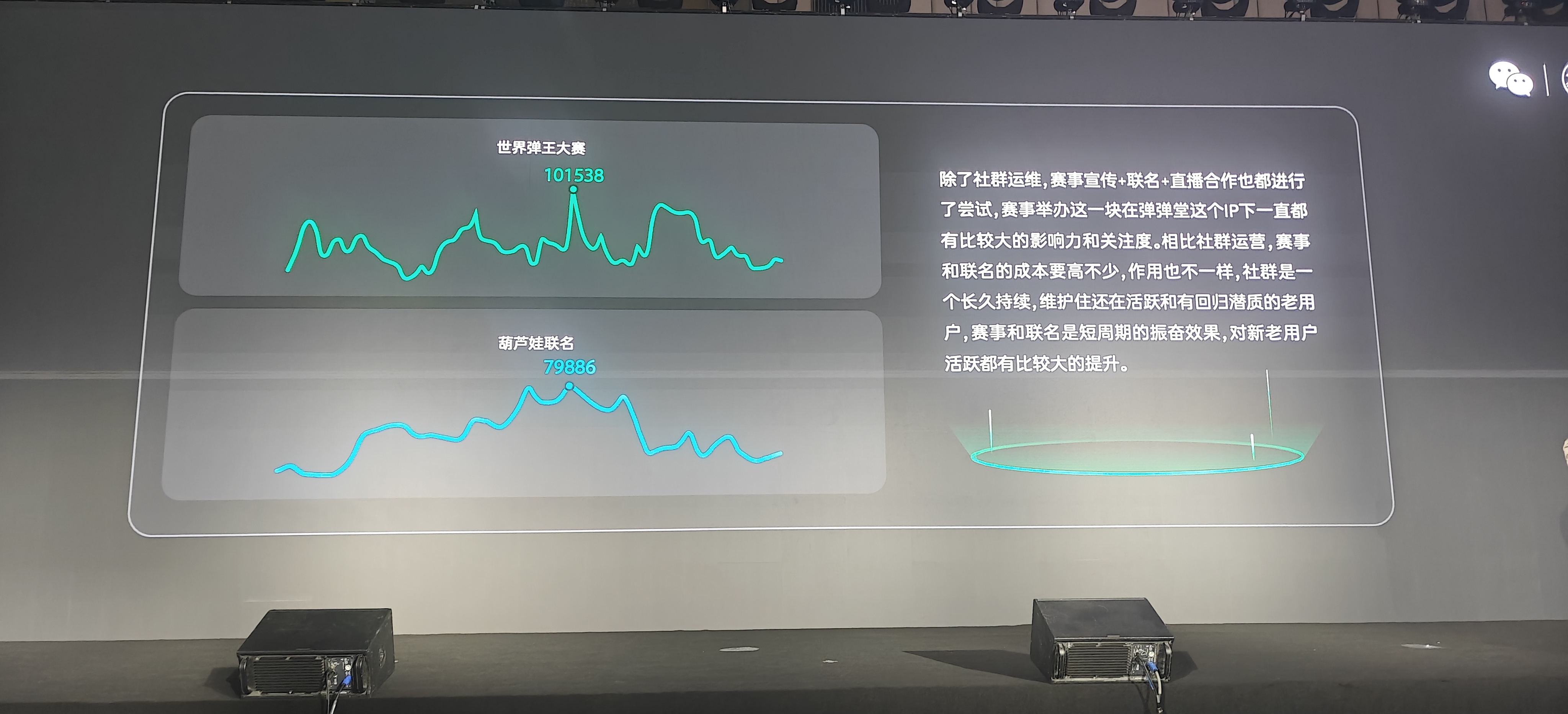 除此,游戏外的大型活动推广同样能有效汇聚大批新老用户。我们曾邀请中、越、泰三国玩家,共同举办了一场世界弹王大赛。决赛当晚的对战一直持续到凌晨两点多,赛事带动的游戏活跃峰值突破了 10 万。值得一提的是,在那场世界弹王大赛的决赛中,我们还实时展示了选手的心率数据,极具节目效果。